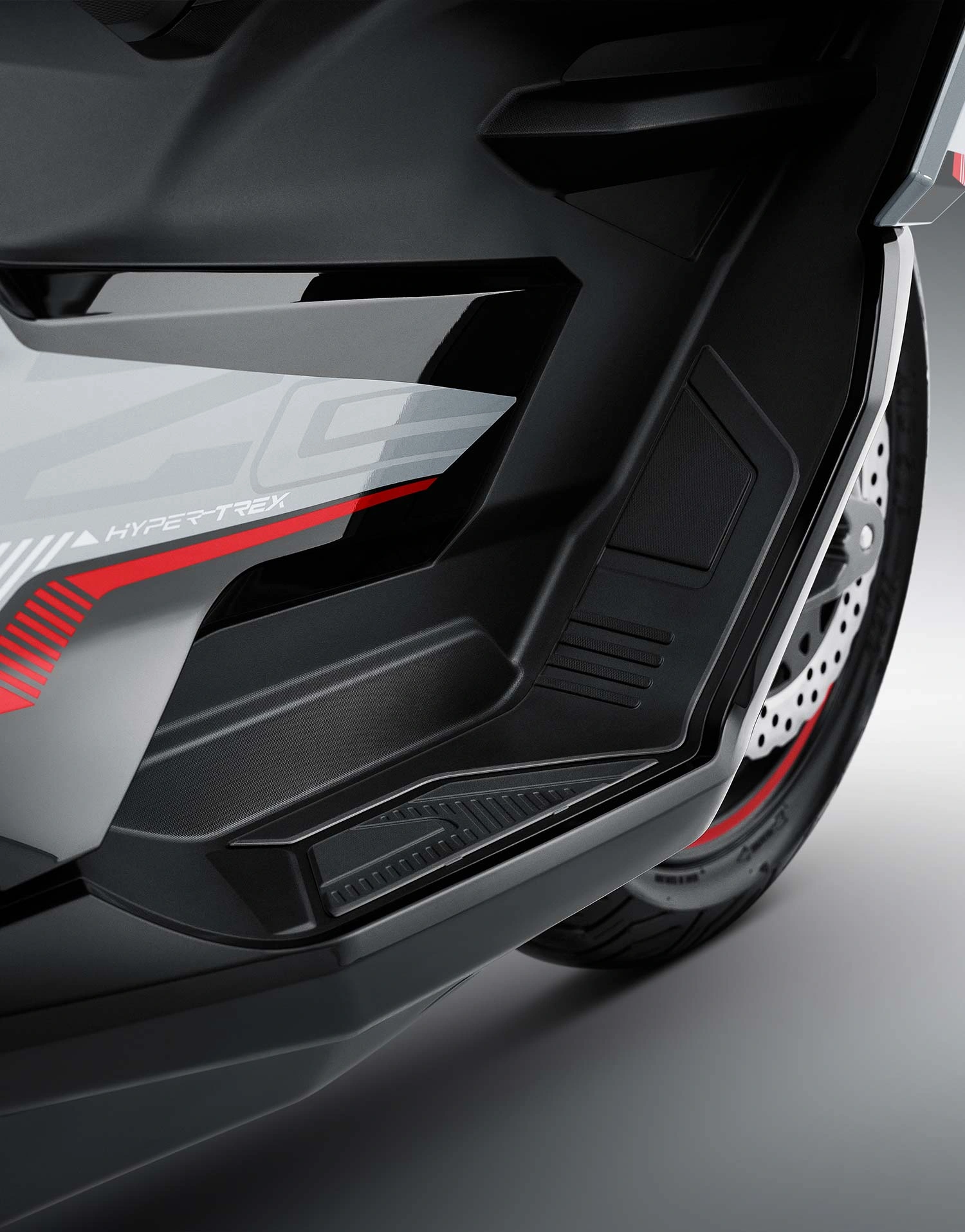 พื้นที่วางเท้าออกแบบใหม่พร้อมพื้นผิวกันลื่น ช่วยเพิ่มความมั่นคงในการขับขี่ ทั้งทางตรงและเข้าโค้ง พร้อมดีไซน์แบบเหลี่ยมคมที่ให้ลุคสปอร์ตยิ่งขึ้น